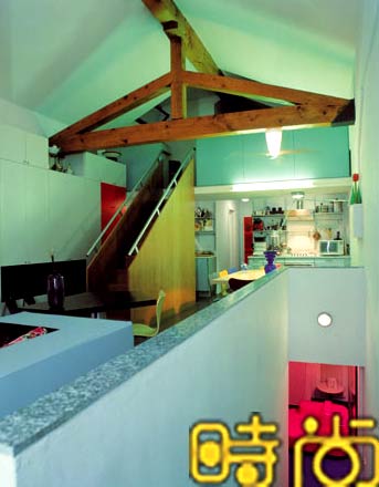 在某種特定的感覺(jué)中,經(jīng)驗(yàn)會(huì)在新的特殊的環(huán)境中提示我,巴黎的那處只有18平方米的小房間,小房間里的夸大設(shè)計(jì)遍布在哪怕最細(xì)小的環(huán)節(jié)上。雖然米蘭的這處房子8倍于它,但在這兩個(gè)案例中都能讓人體會(huì)到真正的建筑中的家庭裝飾與陳設(shè),甚至是連接兩層之間的臺(tái)階也是一個(gè)巨大的櫥柜