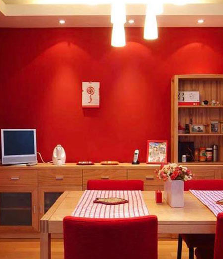 中國人認為紅色是吉祥色,從古至今,新婚的喜房就都是滿眼紅彤彤的。紅色還具有熱情、奔放的含義,充滿燃燒的力量。但居室內(nèi)紅色過多會讓眼睛負擔(dān)過重,產(chǎn)生頭暈?zāi)垦5母杏X,即使是新婚,也不能長時間讓房間處于紅色的主調(diào)下。