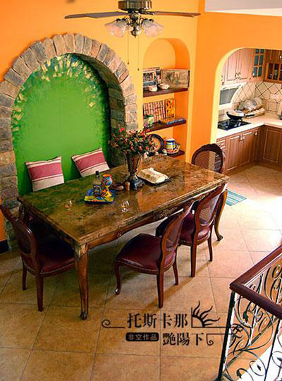 橘 紅色又或是橙色,是生氣勃勃、充滿活力的顏色,是收獲的季節(jié)里特有的色彩。把它用在臥室則不容易使人安靜下來,不利于睡眠。但將橙色用在客廳則會營造歡快 的氣氛。同時,橙色有誘發(fā)食欲的作用,所以也是裝點餐廳的理想色彩。將橙色和巧克力色或米黃色搭配在一起也很舒暢,巧妙的色彩組合是追求時尚的年輕人的大 膽嘗試。