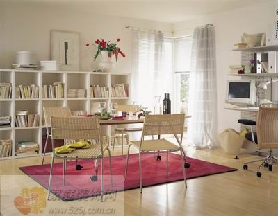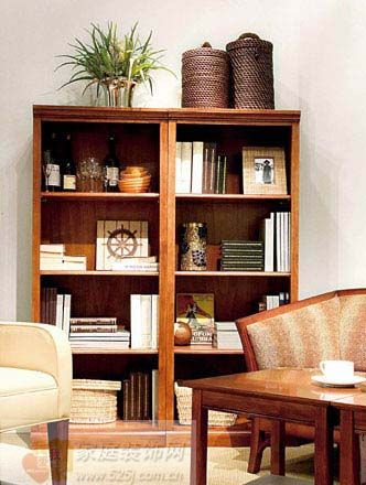 櫻桃木質(zhì)書架線條精致簡單,采用等距離分割格架,為了不使書架看起來過于呆板,還可以留出一部分,專門當(dāng)做古玩架,擺上幾件大小各異的工藝品,以創(chuàng)造靜中有動(dòng)的效果。