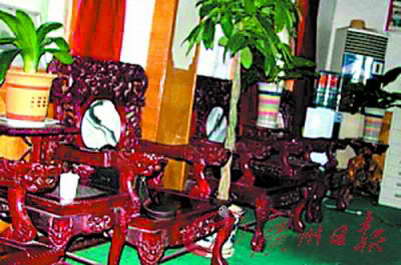 最令人瞠目的是“書(shū)記室”里的擺設(shè)。偌大的房間里,擺滿(mǎn)了散發(fā)著古樸香氣的名貴紅木椅子、茶幾。光紅木椅子就有14張。鄰近鄉(xiāng)鎮(zhèn)一位來(lái)訪(fǎng)的領(lǐng)導(dǎo)告訴記者,每張椅子的價(jià)錢(qián)都不會(huì)低于5萬(wàn)元。更令人稱(chēng)奇的是,黨委書(shū)記本人坐的是椅背上雕有龍圖案的“龍椅”。