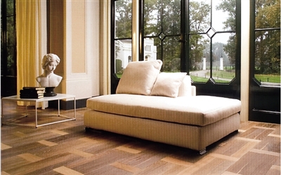 Fetim方格運(yùn)用新古典拼花的表現(xiàn)形式,散發(fā)古老的歐式味道,將歐洲文化緊密融入生活。加寬處理的板面,是大地板在寬度上的又一突破和升級(jí)。而手工鑲嵌工藝的敲面處理,使整塊地板呈幾何形狀整齊分布,帶有凹凸質(zhì)感更古樸耐看,裝飾效果也更強(qiáng)。當(dāng)初選擇這款地板入封面的雜志工作人員表示,這款地板能讓都市的喧囂、浮躁立即消失在腳下,好似通過地板把家搬到郊外,使靈魂安靜下來。