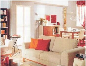 少用大型的酒柜、電視柜等,以使空間的分割單純化。如果大型家具十分需要,則往角落放置為好。特別是沙發(fā)的選用要謹(jǐn)慎,稍不留神就會占去半個客廳。