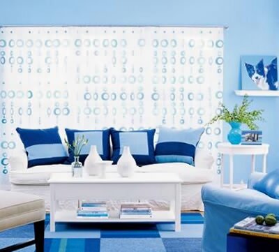 概要: 炎熱的夏天,家里的紅色、橙色只會讓你覺得更熱、更煩躁,把客廳粉刷上天藍色,再精心搭配不同的配飾,你的房間會立刻清涼變身?! ?、藍色+藍色冰爽一夏 還有什么顏色比藍色更適合于在夏天使用。多增添點藍色吧。深淺不一的青綠色、深藍色、青玉色、水綠色,加之大膽的幾何圖案,這間客廳呈現出清爽的氛圍。