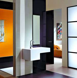 使用大面積鏡子,鏡子的安置可以讓本來(lái)很小的空間看上去很大,但是不要把自己限制在普通的櫥柜鏡上面,可以貼墻而立,也可置于房頂之上,不僅遮住樓上住戶的下水管道,也使狹小的空間富有變化、有層次感。大面積玻璃的反射,讓人在視覺(jué)上感到空間很大。