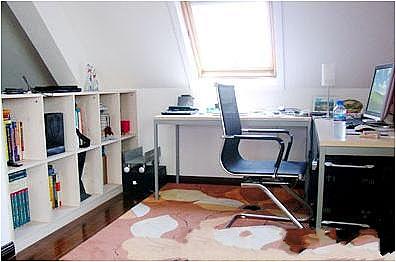 提到閣樓,人們往往會聯(lián)想到“安寧”、“寂靜”之類的詞語,而這些詞又恰好是書房必備要素之一。所以,把閣樓布置成“空中書房”也是非常合適的。在閣樓傾斜的窗戶下放一張整潔的書桌,再在墻邊擺一排造型簡潔的書柜。當(dāng)你看累了電腦屏幕上的文字、數(shù)據(jù),抬起頭來,就可以透過玻璃,輕易瞭望到遠(yuǎn)處的風(fēng)景。