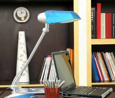 書寫臺燈的燈罩一般多為不透光或半透光,以使光亮下照集中。其光度與人的視線距離都有規(guī)定,一般相距30厘米~45厘米,燈光與視線形成45度夾角。