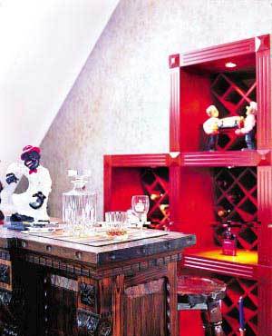 在客廳里設(shè)置一個(gè)小巧玲瓏的吧臺,已經(jīng)成為一種時(shí)尚,但更多的是出于情調(diào)考慮。如何讓放置在客廳的吧臺給人一種異樣情調(diào)和華貴感覺,最經(jīng)濟(jì)、最有效的辦法就是運(yùn)用光線的錯(cuò)落營造出華麗而浪漫的氣氛。這時(shí)不妨在客廳一角的小吧臺上方安裝幾盞射燈,再以名酒和別致酒杯精心點(diǎn)綴,一個(gè)風(fēng)趣、搶眼的小吧臺,頓時(shí)就會展現(xiàn)在眼前。另外,在一個(gè)開放式的廚房里,細(xì)心的主人只需將餐桌稍加點(diǎn)綴,就可以把它變成一個(gè)簡單而漂亮的小吧臺?;蛘咴诓妥郎戏皆O(shè)計(jì)一道弧形窗口,配上精致小巧的罩燈,餐桌上再擺放些有情趣的藝術(shù)品,色彩上再強(qiáng)調(diào)一些現(xiàn)代感元素……既實(shí)用又有情調(diào)的吧臺立刻就會給餐廚空間增色不少。
