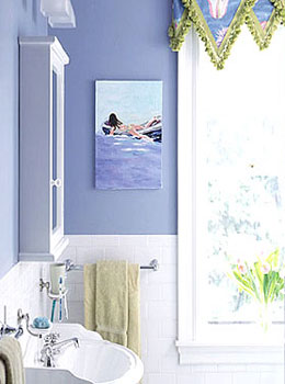 將藝術(shù)品或工藝制品放置于衛(wèi)浴間內(nèi),似乎有點(diǎn)兒有失高雅。然而事實(shí)上,只要排除了衛(wèi)浴間比較潮濕這一點(diǎn)對(duì)于工藝品可能帶來的損傷,衛(wèi)浴間內(nèi)完全可以引進(jìn)高雅藝術(shù)。