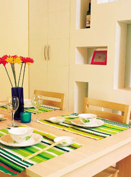 餐桌是格外需要烘托的。有人說(shuō)一張餐桌就是一個(gè)任由您打扮的模特。為了要顯出它獨(dú)特的風(fēng)格,可選擇不同的桌布,如簡(jiǎn)樸的麻質(zhì)桌布表現(xiàn)出一種傳統(tǒng)風(fēng)味,鮮艷明亮的桌布則能令人感到一種歡快活潑的氣息。另外,餐桌上方配以合適的燈具,既能讓人領(lǐng)略美食的“色”之美,又能營(yíng)造出一種迷人的氛圍。在精心打扮的餐桌旁和親朋好友一起享用一頓精心烹調(diào)的晚餐,濃濃樂(lè)趣,盡在其中。