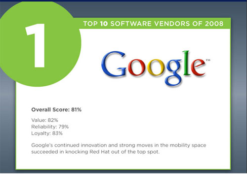 谷歌高居2008年的最佳軟件公司榜首 資料圖片