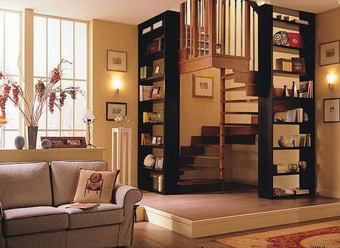 螺旋梯是折梯的變形。這種樓梯優(yōu)點是對空間的占用最小,且具有強烈的動態(tài)美,由于不靠墻,圍欄不能借助墻體,需加上透空欄桿,這就更好地表現(xiàn)了樓梯的藝術(shù)之魅。缺點在于有局促感,由于每一段跨度較多,因此安全性較差。