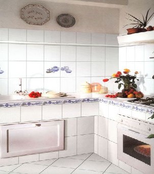 瓷磚之于廚房猶如外衣打扮女子一般。 特別是對(duì)于面積較小的廚房,可塑空間有限,所以5至13厘米的小規(guī)格瓷磚點(diǎn)綴其中就顯得效果極佳了。通常,淺色瓷磚有利于擴(kuò)大人們的視野空間,反光也可提高小面積空間的亮度。我們既可以選擇永遠(yuǎn)流行的白色系,又可以青睞淺綠、天藍(lán)、淺紫等冷色調(diào)的花飾瓷磚。其實(shí),二者都在追求明快、簡(jiǎn)潔和時(shí)尚的感覺(jué)。