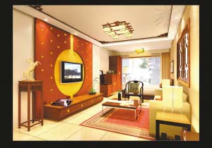 裝飾中式風(fēng)格的婚房需要在色彩上加以渲染,但不建議大面積鋪陳,可以以暖色為主。如墻、床頭背景的“中國紅”底色,強(qiáng)調(diào)了主題。而沙發(fā)背后的墻面,因為怕大面積紅色太“煩躁”,特地采用淺花紋的壁紙,既突出了婚房的主題,又顯得干凈清爽,同時更好地襯托了對面的電視背景墻。