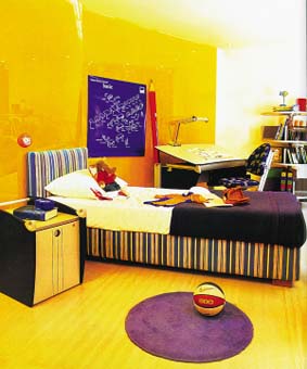 4、儲(chǔ)藏空間:儲(chǔ)物空間必須在歲月里適合兒童并與兒童一起成長(zhǎng),這就得容納各種不同的功能。在大約十歲之前,地板空間對(duì)兒童是重要的-----在那以后,他們會(huì)進(jìn)一步定位為傾向桌子或臺(tái)面活動(dòng)。