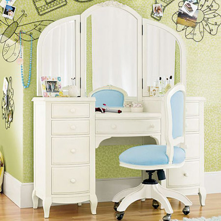 大多數(shù)化妝臺都配有一塊鏡子,一般設(shè)計在桌面以上的位置。但是,也有單配的掛在墻上。如果是這樣,安鏡子的時候就要注意鏡子怎樣安才方便化妝,比如弄成可推拉、可折疊的。如果臺面下有些小抽屜,存放珠寶首飾之類的東西拿出放進就會很方便。