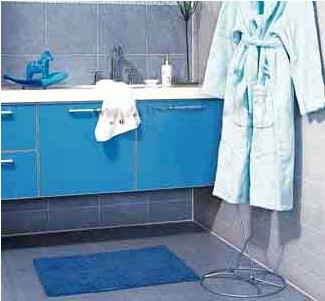 勿忘的點(diǎn)睛之筆——方便實(shí)用的裝飾品:衛(wèi)浴間的裝飾材料以藍(lán)色為主,色調(diào)整體偏冷。在這樣一個(gè)冰冷季節(jié),柔軟的棉制面料會提供溫軟舒適的感覺。在冷色基調(diào)中營造出暖意融融的洗浴環(huán)境。
