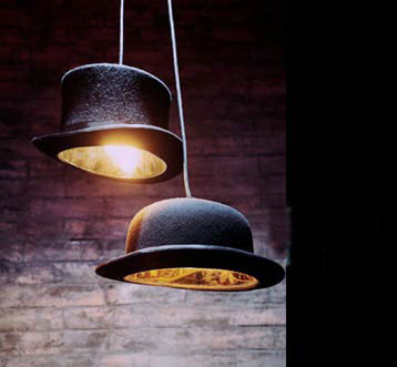 也許沒有去過英國,但是你一定對(duì)英國人的帽子記憶猶新,無論原本是多么**的一個(gè)人,只要把這帽子往頭上一罩,再配上黑色的西服與拐杖,一個(gè)活脫脫的“衣冠禽獸”形象便躍然紙上了--Jake Phipps將這種“道貌岸然”融合進(jìn)了燈具設(shè)計(jì),這就是波樂帽吊燈 (Jeeves And Wooster Lamp):以禮帽為燈罩 (當(dāng)然,襯里經(jīng)過了處理),有圓頂和平頂兩種款式,每次進(jìn)屋一開燈,那種維多利亞式的古典與優(yōu)雅便會(huì)灑滿整個(gè)屋子,于是人不自覺地就紳士起來,就連說話,似乎也開始帶著倫敦腔了,非常適合一些玩弄小資情調(diào)的咖啡廳或者酒吧使用。