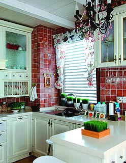 而在櫥柜上則更多選擇實木。水洗綠、檸檬黃,是多年以來都流行的色彩,木條的面板紋飾強化了自然味道。如果你是喜歡鄉(xiāng)居的人,鄉(xiāng)村風格的廚房會讓你的生活更加充滿閑適自然的味道。