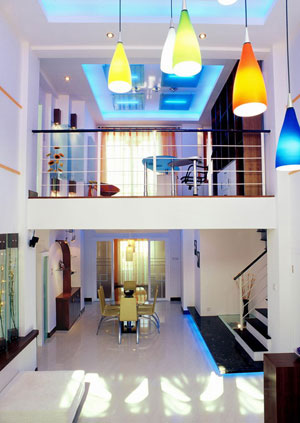 室內(nèi)光線的效果是室內(nèi)空間形象給人的第一感覺。光線不充足、暗淡的房子使人感到壓抑,而光線明亮的房子則給人以開闊、明朗的感受。因此,在處理低矮住房時(shí),應(yīng)盡量多采用透明度強(qiáng)的材料,門和窗應(yīng)面積大些,以增加房?jī)?nèi)的亮度。