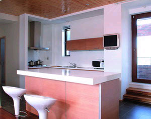 櫥柜選擇自己喜歡的款式與顏色,所以非常喜歡,廚房雖小但必要的儲(chǔ)物功能基本達(dá)到。在使用中,臺(tái)面與灶臺(tái)、油煙機(jī)的清潔非常方便,洗滌、切菜和炒菜在一條直線(xiàn)上,“一條龍”操作,很方便,頂柜柜門(mén)為上拉式,比較省力。