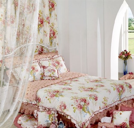 總的來(lái)說(shuō),歐美古典主義風(fēng)格的床上布藝用品,在材料選擇方面,以純棉、綢緞、錦緞等素材,制作出印花、刺繡、提花三款床具式樣。在細(xì)部創(chuàng)意上,則注重蕾絲花邊的加工,極力營(yíng)造床位立體美。色彩方面,永不退流行的白,依然是設(shè)計(jì)的重點(diǎn),為彰顯雪白床具的潔凈細(xì)致,在細(xì)部花紋上則用鑲繡、鏤花、緞帶造型,營(yíng)造雅致的感覺(jué)。其他的淡黃、淺菊、淺褐等風(fēng)格清新的床飾十分適合炎夏使用。此外,亮眼的流行色(亮菊、寶藍(lán)、艷紅、鮮黃)和各式充滿海洋、陽(yáng)光、庭園的圖形,增添室內(nèi)的迷人的風(fēng)采,為消費(fèi)者帶來(lái)法式的浪漫與溫柔。