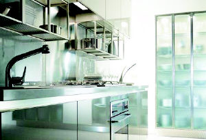 標(biāo)準(zhǔn)長度可折疊的玻璃門,采用寬廣的磨砂玻璃,柜內(nèi)餐具、器皿、廚具若隱若現(xiàn)。生動(dòng)的背景光投射下,玻璃櫥柜使整個(gè)廚房營造出一種溫馨浪漫的氛圍。美觀大方的玻璃櫥門,有著不容小覷的實(shí)用性,通風(fēng)透氣,尋找東西也十分方便,不會(huì)因?yàn)橐乙粯訓(xùn)|西,翻箱倒柜;櫥柜內(nèi)置輕便的觸摸式感應(yīng)燈,白天日光和夜晚燈光的反射,能使廚房更明亮。玻璃櫥柜清淡的色澤,配合時(shí)柔和、時(shí)刺眼的光亮,化解了銀灰色金屬質(zhì)感廚具、櫥柜的枯燥乏味,頃刻之間,就把廚房變得平和而有趣。