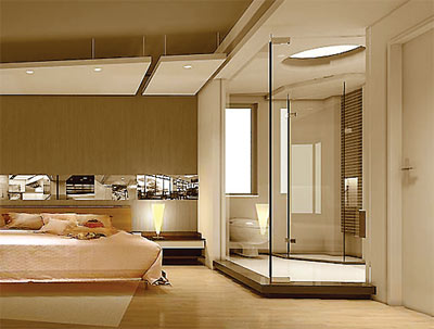 我發(fā)現(xiàn),開放式浴室對臥室家具的要求應該同樣嚴格。一般通風條件下,衛(wèi)生間的濕度在25%至35%之間,淋浴后濕度可達85%左右,這樣一來,假如開放式衛(wèi)生間的密封性不好,臥室里的家具非凡是木質(zhì)家具,在選材上必須要能反抗住溫度、濕度和紫外線的侵襲,確保長期使用也不會開裂變形。在選擇家具時,應該選防水性好的烤漆表面家具,或者對普通家具事先做好防水處理。