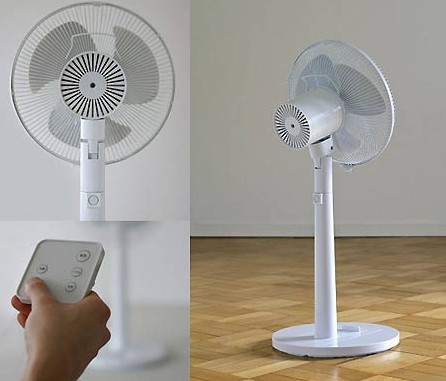 這是Muji牌電風扇,Industrial Facility設計,一個可遙控的風扇,高度可以從84cm升高到104cm以及速度、方向和頻度的調(diào)節(jié)。他們設計的出發(fā)點并不是從產(chǎn)品本身出發(fā),而是空間和風,一個類似飛機引擎的電機房子,風扇的時間都是分配在開ON和關(guān)OFF上,設計表達出了簡潔和平衡。