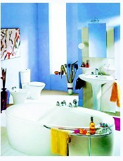 小面積的白色標(biāo)準(zhǔn)浴室,雖然衛(wèi)生,但對人的感官沒有刺激性,時間長了就會令人感到索然無味,而顏色卻能排除這種單調(diào)性。所以說,給浴室選擇適當(dāng)?shù)念伾坏幸嬗谝暳?,而且還可以讓整個浴室生色不少。