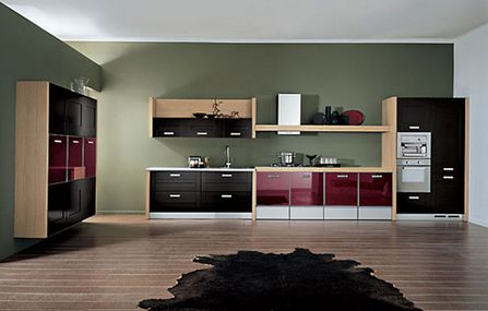 素材:酒紅覆膜玻璃、高密度防火板、鋁踢腳板、高科技合成防火板、自動(dòng)回彈路軌鋁拉手、可調(diào)腳、實(shí)木貼皮板、鋁邊、廚房電器等。