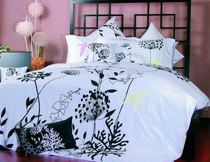 布莉絲是美國聞名的時(shí)尚家居品牌,主打產(chǎn)品為床上用品、香熏蠟燭和飾品,本季的設(shè)計(jì)風(fēng)格將優(yōu)雅的生活品位極致展現(xiàn),引領(lǐng)出新一季的家居裝飾流行風(fēng)向。運(yùn)用花鳥、枝條等設(shè)計(jì)元素,流露簡約、自然、優(yōu)雅、閑適的生活情趣;透過大膽、鮮明的配色理念,彰顯出自由、飛揚(yáng)、成熟、現(xiàn)代的個(gè)性感受。代表產(chǎn)品安妮絲雖然色彩很酷——運(yùn)用了黑白對(duì)比,但是花草的圖案很曼妙,非凡是刺繡上的飛鳥很別致。
