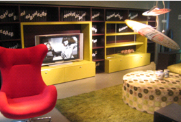 檸檬黃:起居氣氛生氣盎然 綠色是大自然賦予這個(gè)季節(jié)的顏色,家里也同樣適合選用,適當(dāng)?shù)木G色不僅能夠給居室?guī)?lái)生氣和活力,同時(shí)也能也能起到很好的視覺(jué)調(diào)節(jié)作用。本案中,博洛尼設(shè)計(jì)師在采光欠佳的起居室中加入檸檬黃、大紅和果綠色,將灰暗低沉一掃而空。