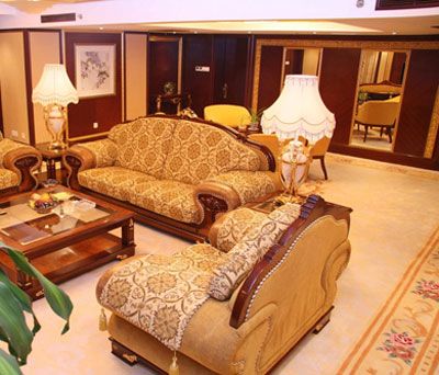 (2)技術(shù)要領(lǐng):采用粘結(jié)式鋪裝地毯的房間往往不安踢腳板,如果安裝,也是$E地毯鋪裝后安裝,地毯與墻根直接交界。因此,地毯下料必須十分準(zhǔn)確,在鋪裝前必須進(jìn)行實(shí)量,測(cè)量墻角是否規(guī)方,準(zhǔn)確記錄各角角度。 裁割地毯時(shí)應(yīng)沿地毯經(jīng)紗裁割,只割斷緯紗,不割經(jīng)紗,對(duì)于有背襯的地毯,應(yīng)從正面分開(kāi)絨毛,找出經(jīng)紗、緯紗后裁割。 地毯刮膠應(yīng)使用專(zhuān)用的V型齒抹子,以保證涂膠均勻,刮膠次序?yàn)橄绕纯p位置開(kāi)始,然后刮邊緣。刮膠后晾置時(shí)間對(duì)粘結(jié)質(zhì)量至關(guān)重要,一般應(yīng)晾置5~l0分鐘,具體時(shí)間依膠的品種、地面密實(shí)情況和環(huán)境條件而定,以用于觸摸表面干而粘時(shí)隨裝最好。 地毯鋪裝應(yīng)從拼縫處開(kāi)始,再向兩邊展開(kāi),不須拼縫時(shí)應(yīng)從中間開(kāi)始向周邊鋪裝。鋪裝時(shí)用撐子把地毯從中部向墻邊拉直,鋪平后立即用氈轆壓實(shí)。