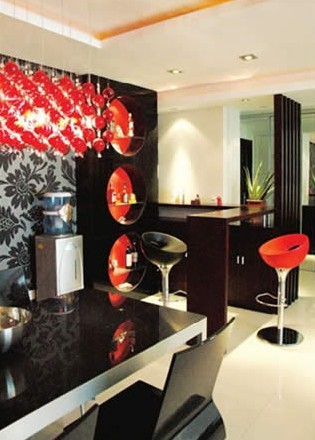 根據(jù)客戶的要求,設(shè)計師先是仔細分析戶型特點,提出初步的設(shè)計方案,經(jīng)過多次與陳先生及其家人進行充分的溝通,設(shè)計師針對陳先生提出的第一點要求,把整個設(shè)計的基調(diào)定位在白色,以全面襯托深紅色的家具為目的,再加以既現(xiàn)代又富有中國傳統(tǒng)的深藍**塊點綴;針對第二點,設(shè)計師對整個房間的格局作了一個比較大的改動:把原有的朝南的主臥改成了現(xiàn)有的小孩房,又把原有朝北的小孩房改成現(xiàn)有的主臥;又把原有的兩個主臥衛(wèi)生間及更衣室重新合并組合。此外,還增加了旋轉(zhuǎn)衣架,把衛(wèi)生間門隱藏,衛(wèi)生間也做了干濕分離的處理。