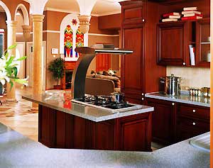 設(shè)計(jì)師必須針對需求選擇燃?xì)庠畹墓δ埽ㄗh選擇多個“灶眼”的燃?xì)庠?,提高使用效率。而油煙機(jī)的煙道走得較長,因此煙機(jī)的排風(fēng)量、電機(jī)的功率都應(yīng)較大。如果煙道長度大于4米,就應(yīng)考慮增加一級排風(fēng)裝置,增進(jìn)排風(fēng)效果。另外地排式的煙機(jī)也是一種不錯的選擇,當(dāng)房主有在大廚房里享受野外燒烤的習(xí)慣時,設(shè)計(jì)師不妨為房主選擇這種煙機(jī)。