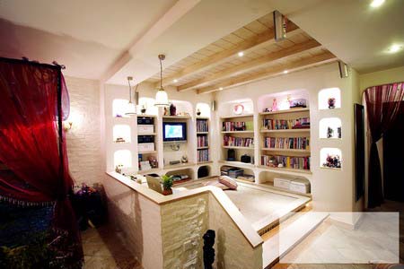沙發(fā)后、地臺(tái)上做幾個(gè)擱板,既可以放書和影碟,也能擺放玩具,作用多多。