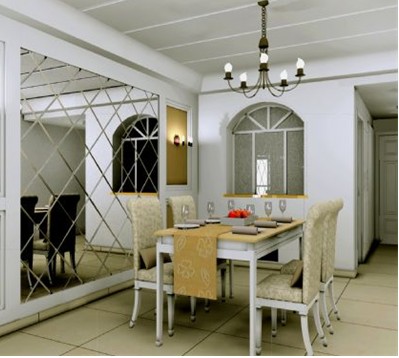 在用餐區(qū)裝設(shè)鏡子,映照出餐桌上的食物,有使財富加倍的效果。這是家中唯一可以懸掛鏡子映照食物的地方,其他諸如廚房是絕對不能掛鏡子,因為會導(dǎo)致意外或火災(zāi)發(fā)生