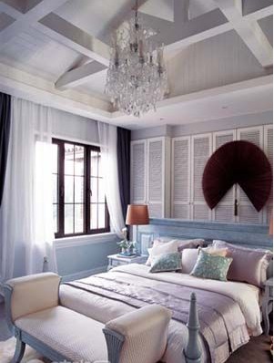 實用主義和浪漫主義可以在臥室中并存,藍(lán)白色調(diào)浪漫而沉靜,藍(lán)色清透與白色的安靜相互映襯,有著海一般的夢幻感覺,優(yōu)雅的配色似如歌的行板,浪漫溫馨,裝點出如水一般純凈又內(nèi)涵豐富的臥室氛圍。