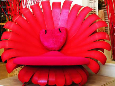 粉色太陽花瓣構(gòu)成了沙發(fā)的整體,花蕊設(shè)計成桃芯靠墊,花蒂則成為整個沙發(fā)的支撐點。坐在這吐蕊的太陽花沙發(fā)上,仿佛回到那個花仙子陪伴的童年。