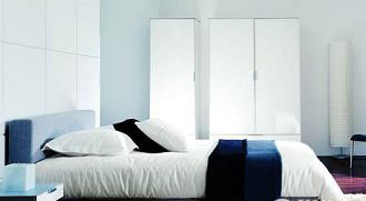 不知從什么時(shí)候開始,人們在床上的生活已經(jīng)不限于睡眠的8小時(shí),那些滿足睡眠、娛樂甚至工作等功能的復(fù)合性床具增加了我們對(duì)臥室的依戀。所以臥室不在大,關(guān)鍵是以床為中心的舒適感和放松感。