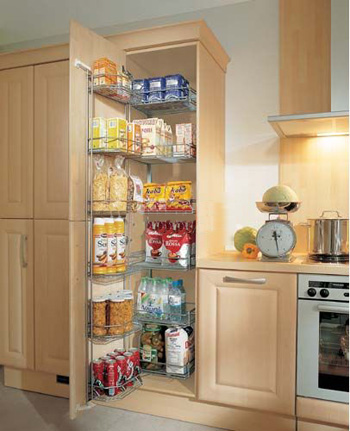 有的櫥柜因為內(nèi)部空間較大,就采用能抽拉的蝶形層架。通過巧妙的構(gòu)造,拉開一點能拿到放置較近的物品,完全拉開就聯(lián)動帶出放置較深的東西,省去了探進櫥柜翻找東西的苦惱。柜門阻尼器的使用也是一個很人性化的舉措。由于柜門鉸鏈的拉力,通常在關(guān)閉柜門后都有討厭的嘭嘭聲,但采用阻尼器后,櫥柜門合上時,能被阻尼器先緩沖一部分力道,然后緩慢地閉合。