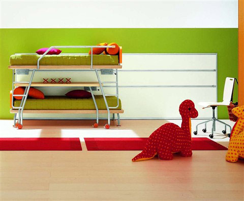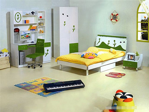 能夠組合的家具盡量組合在一起,比如做成高低鋪的床,床的下面就是孩子的寫字臺(tái)、儲(chǔ)物柜等,這種床占地面積不到4平方米,然后只要再增加一個(gè)衣柜就行了,特別適合小戶型家庭,房間正當(dāng)中的空間可留出來供孩子玩耍、游戲。