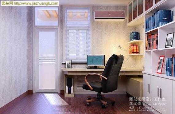 書房是一個(gè)工作空間,但絕不等同于一般的辦公室,它要和整個(gè)家居的氣氛相和諧,同時(shí)又要巧妙地應(yīng)用色彩、材質(zhì)變化等手段來創(chuàng)造出一個(gè)寧靜溫馨的工作環(huán)境。