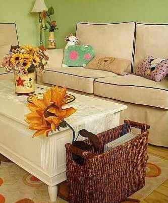如果實在忙得無暇打理花草也沒事,去布藝店為沙發(fā)量身定做一身花朵盛開的“新衣”,或者索性扯幾米淺色調耐磨的布,直接鋪在布藝沙發(fā)上,更顯灑脫隨意的心情。