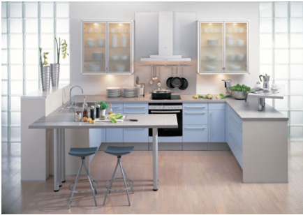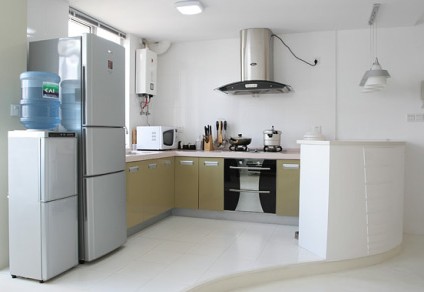 由于二次裝修的廚房面積一般都比較小,所以更適合一字型和L型的櫥柜。一個(gè)完整合理的廚房是由洗物區(qū)、料理區(qū)、烹飪區(qū)組成,是一個(gè)舒適便利的三角工作區(qū)。長(zhǎng)方形的廚房較常見(jiàn),大多數(shù)家庭在櫥柜設(shè)計(jì)時(shí)都采用了簡(jiǎn)單的L形,使洗滌區(qū)、操作區(qū)及烹飪區(qū)都設(shè)計(jì)在一條直線上,操作起來(lái)非常方便。