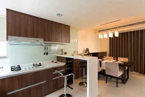 另外,廚房中總有些小角落,折疊或長(zhǎng)度可調(diào)節(jié)的連柜餐桌可以充分利用這些小角落,而且上面做餐臺(tái),下面還可以做推拉式高柜,這種儲(chǔ)藏能力很強(qiáng)的柜體大大減少了對(duì)空間的需求。如果是開(kāi)放式廚房,將料理臺(tái)延伸出來(lái)做成小酒吧也是不錯(cuò)的構(gòu)思。