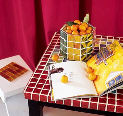 桌面是平的,常見的形狀是方或者圓,用拼貼墻面的方法拼貼桌面,應該不是很難的事。不用敲碎,因為面積比較大,可以自由設計圖案,或者干脆就放滿桌的數(shù)字或者字母,如果是餐桌,就一定要選增加食欲的鮮艷顏色。玻璃馬賽克使桌面顯得干凈透亮,也很好清理。