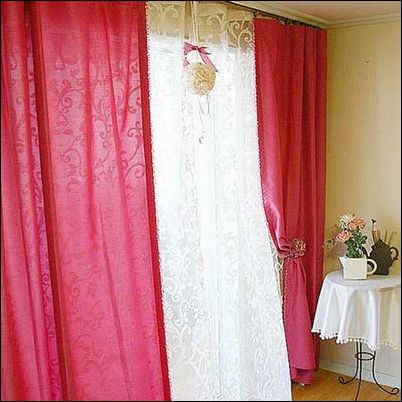 桃粉窗簾