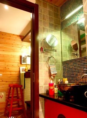浴室設計,以紅色為主